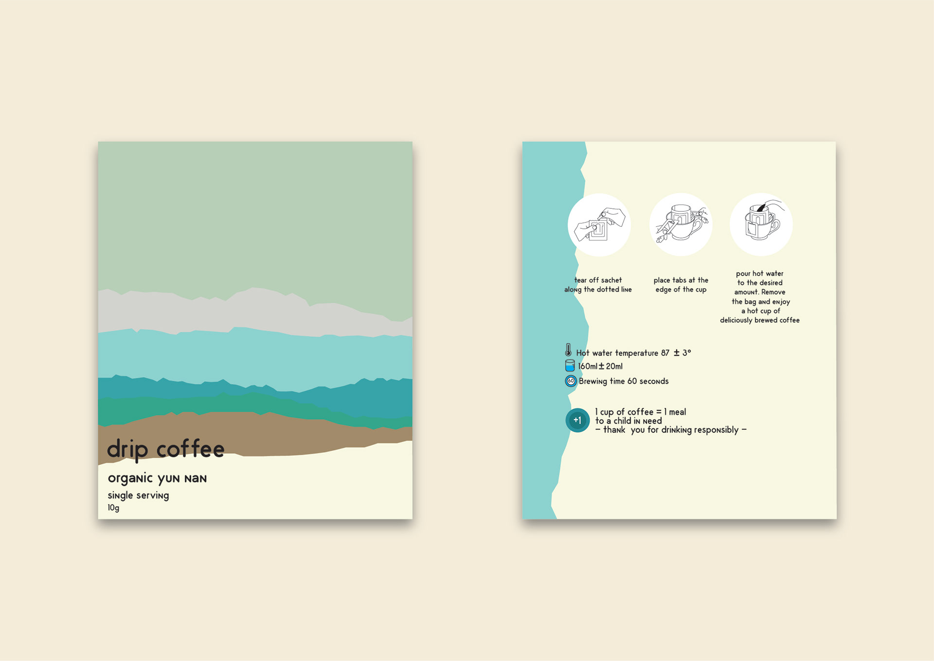 I was tasked to create the packaging design as well as illustrations for a single serve coffee sachet.